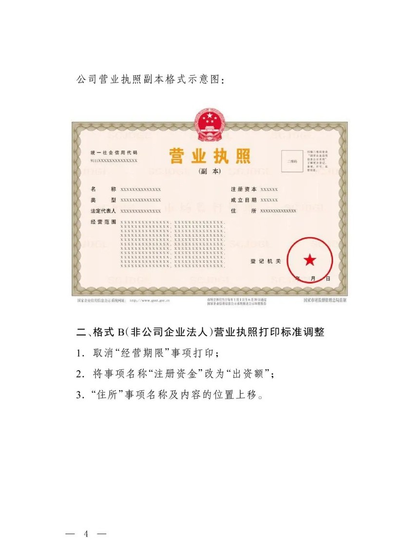 市场监管总局办公厅关于调整营业执照照面事项的通知